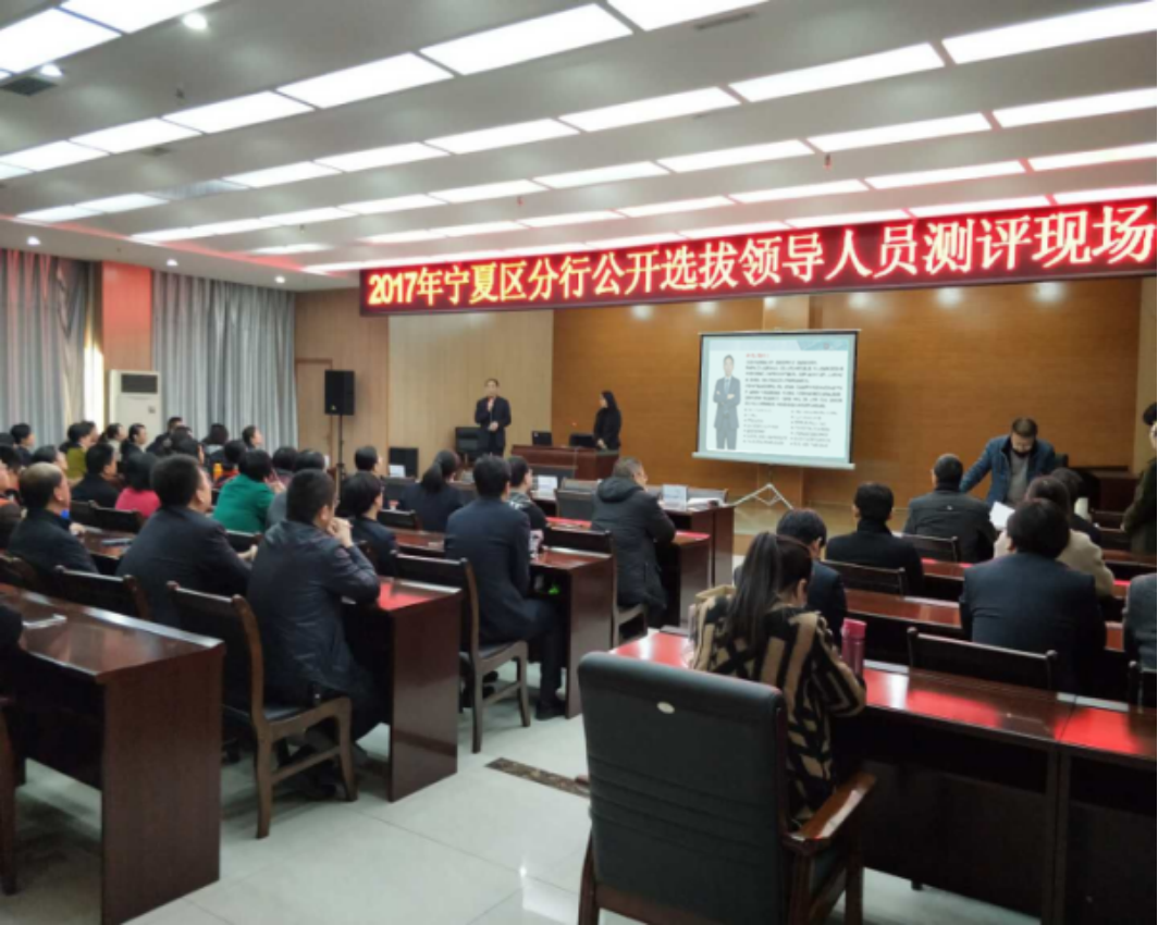2017年11月宁夏自治区的所有建设银行进行内部中层管理选拔,这项目是十年一次的选拔,对于建设银行非常重要。越重要,越需要严谨和公正,同时全程是保密进行的,这次项目邀请了人啊人公司两位专家吴铮老师和黄振忠老师进行现场选拔,这次晋升选拔的人员主要是来自所有分行的七、八和九级别的140多位中层管理人员,通过科学的选拔,从中选拔出行长和副行长