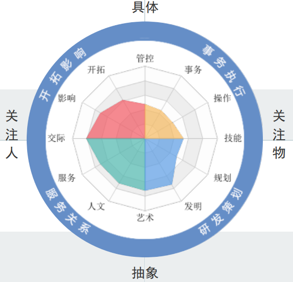 人啊人测评包括12种典型职业类型,例如:事务型、操作型、开拓型等,统称T12职业类型,它总结出不同类型人群在不同职业领域中的特点;CC公司盗用优势领域雷达图等多处外观专利设计。